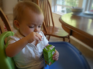 | L can drink from sippy cups and from straws. The straw is so cute; she doesn't stick her tongue out the way Shboogoo always did. |